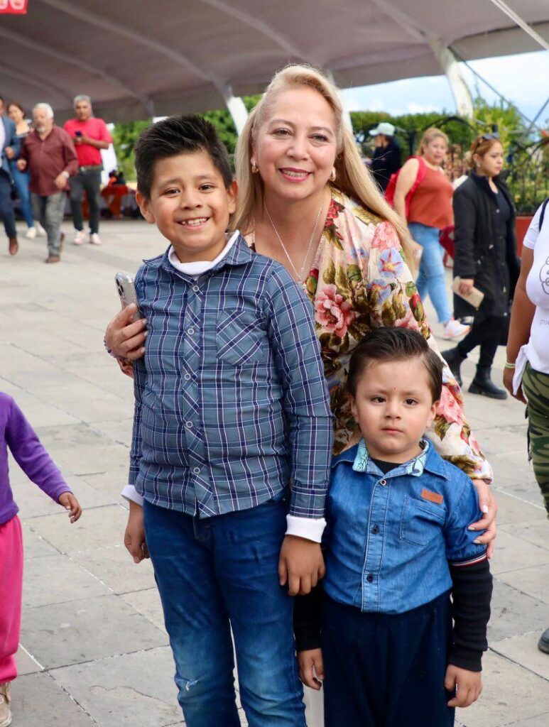 En la Plaza de la Cruz, la alcaldesa reiteró su compromiso con el apoyo a la economía de las familias tepotzotlenses y la educación de los menores, a través del Programa “Pasos Firmes y Útiles con el Espíritu de Servir”, por medio del cual se están entregando más de 13 mil paquetes de útiles escolares y 9 mil pares de zapatos a estudiantes de Tepotzotlán.