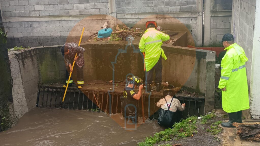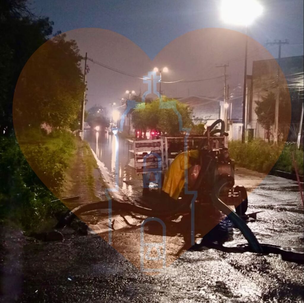 TEPOTZOTLÁN, México, 5 de Septiembre de 2025.- Trabajadores de Agua Potable de Tepotzotlán, Bomberos, Protección Civil, Servicios Generales y otros organismos municipales trabajaron incansablemente toda la noche del jueves y hasta las primeras horas del viernes para enfrentar diferentes afectaciones que dejó una torrencial lluvia que se prolongó por varias horas esta madrugada y que causó daños en infraestructura básica y a propiedades de ciudadanos.