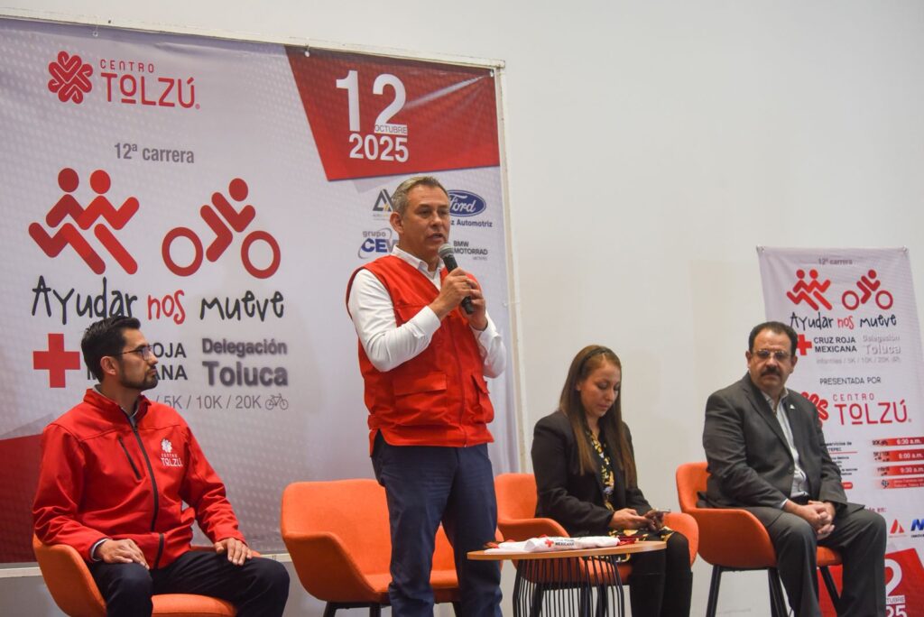 TOLUCA, México, 9 de Septiembre de 2025.- El próximo domingo 12 de octubre se llevará a cabo la décima segunda edición de la carrera “Ayudar Nos Mueve” de la Delegación Toluca de Cruz Roja Mexicana, en la que se pretende reunir a más de 1 mil participantes en las modalidades atléticas de 5 y 10 kilómetros, infantiles de 100, 200 y 500 metros planos, y, por segunda ocasión, ruta de ciclismo de 20 kilómetros por los más representativos y bellos paisajes de la geografía urbana de la capital del Estado de México.