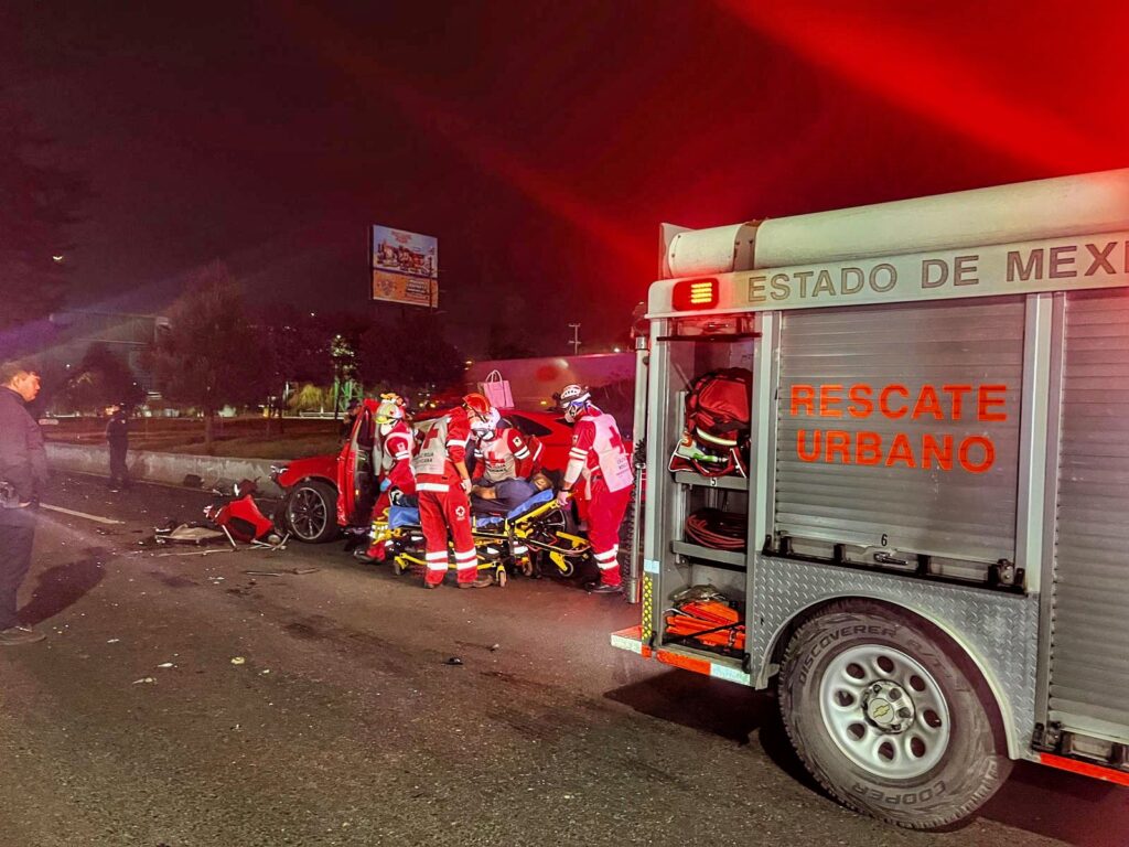 TOLUCA, México, 17 de Noviembre de 2025.- Dos personas, una mujer de 30 años y un varón de 28 años, fueron rescatados por paramédicos de Cruz Roja Mexicana Delegación Toluca-Metepec, luego de sufrir un accidente vial sobre el Paseo Tollocan, a la altura del puente de Chrysler.
