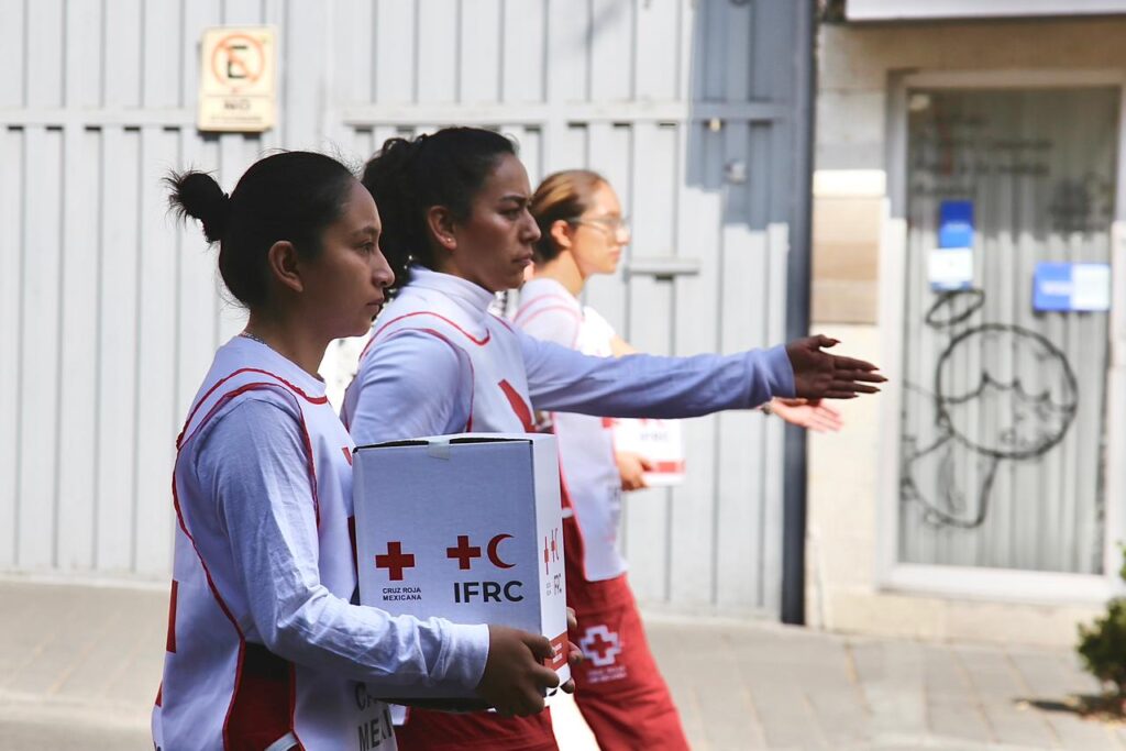 Los voluntarios de Cruz Roja Mexicana realizaron el recorrido cargando cajas de ayuda humanitaria similares a las armadas con más de 24 toneladas de alimentos, kits de limpieza para el hogar, aseo personal y de bebé en los Centros de Acopio, instalados en las delegaciones de Toluca, Huixquilucan y Naucalpan para atender la emergencia registrada por lluvias.
