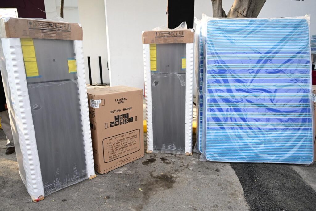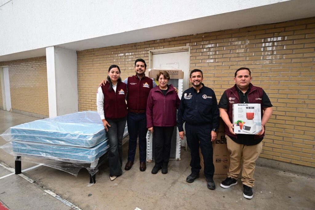 “La intención que tenemos como Gobierno del Estado de México es darles un poquito de apoyo ante esta situación, ahorita lo que se está entregando va a ser un kit de enseres, que incluyen dos colchones matrimoniales, una base de cama matrimonial, una estufa de cuatro quemadores, un refrigerador y una licuadora. Sentimos que son los artículos necesarios para las actividades de los hogares”, aseveró la Maestra Delfina Gómez Álvarez.