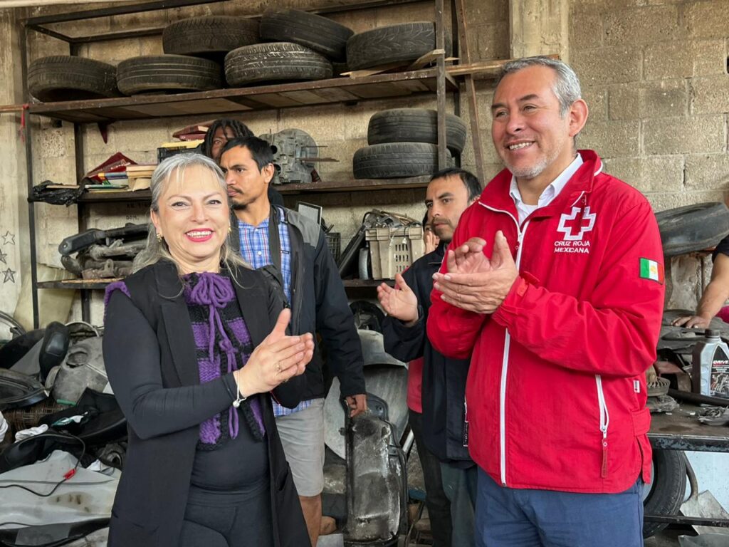 METEPEC, México, 18 de Diciembre de 2025.- La presidenta del Voluntariado del Poder Judicial del Estado de México, señora Alvis Gorostieta Uribe, y el presidente del Consejo Local de Cruz Roja Mexicana, Delegación Toluca-Metepec, Mario Vázquez de la Torre, visitaron la Casa del Migrante, ubicada en Metepec, para entregar ayuda humanitaria a 56 personas que actualmente atiende ese centro.