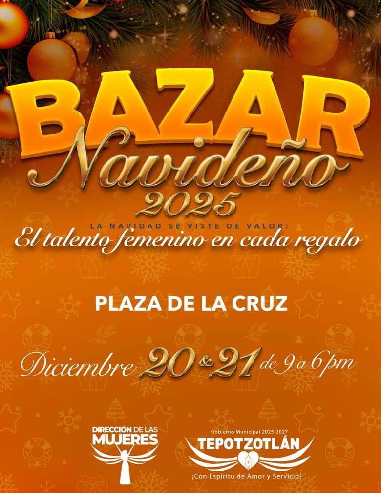 TEPOTZOTLÁN, México, 18 de Diciembre de 2025.- Este sábado 20 y domingo 21 de diciembre, de 09:00 a 18:00 horas, se realizará el Bazar Navideño “El Talento Femenino en Cada Regalo”, un encuentro que reunirá la creatividad y la productividad de 150 mujeres emprendedoras y productoras de Tepotzotlán.